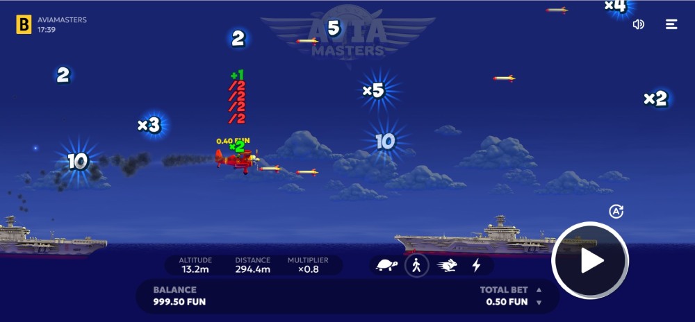 Avia Masters follows straightforward yet engaging rules that create an immersive gaming experience. Each round begins with players setting their bet amount and clicking the “Play” button to launch their aircraft.